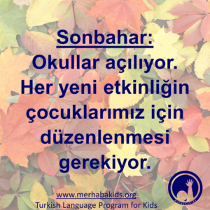 Sonbahar: Okullar açılıyor. Her yeni etkinliğin çocuklarımız için düzenlenmesi gerekiyor.